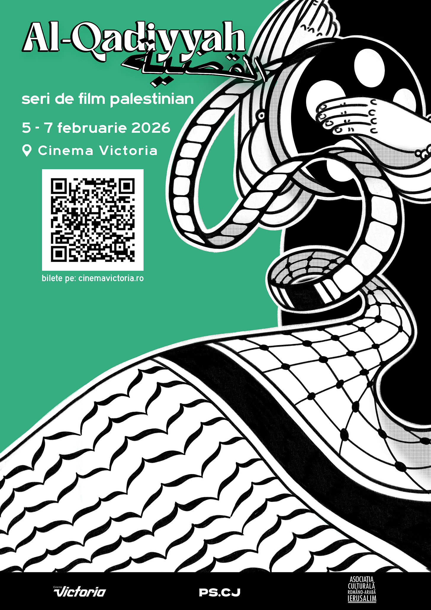 Între 5 și 7 februarie 2026, Al-Qadiyyah | Seri de film palestinian aduce la Cinema Victoria din Cluj-Napoca trei dintre cele mai așteptate filme ale anului 2025, în premieră și avanpremieră națională, într-o explorare cinematografică a cauzei palestiniene.